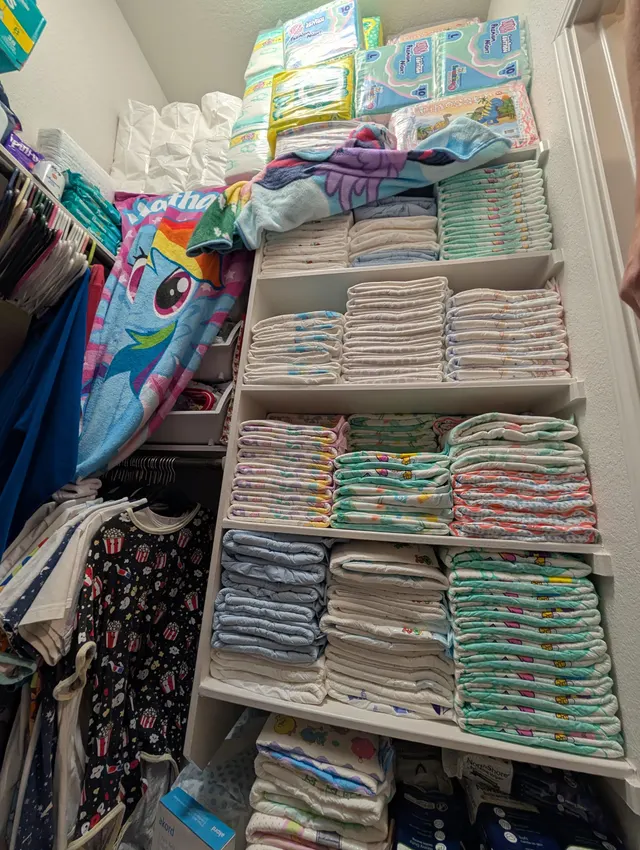 proud baby happily showing her diaper stash 😍 How do you store your diapers?
